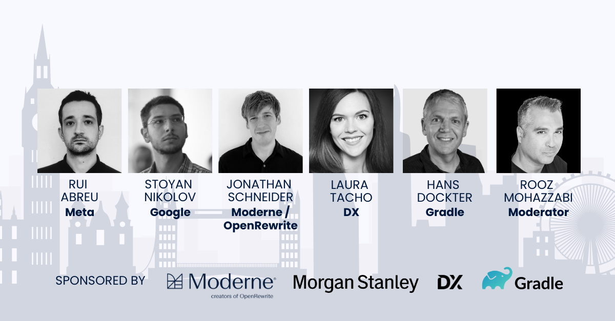 Billions of lines of old code are slowing innovation. Join our in-person panel with leaders from Google, Meta, DX, and Moderne on how AI is transforming the way enterprises maintain, remediate, and modernize massive codebases.