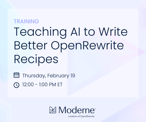 Follow Moderne on LinkedIn for the latest news, company updates, and insights from our team. Stay inspired by the innovative approaches we’re testing to help organizations modernize code faster and smarter.