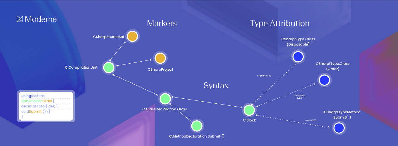 C# is fully represented in the LST, giving coding agents a semantic model of your .NET codebase to reason over and operate against safely.